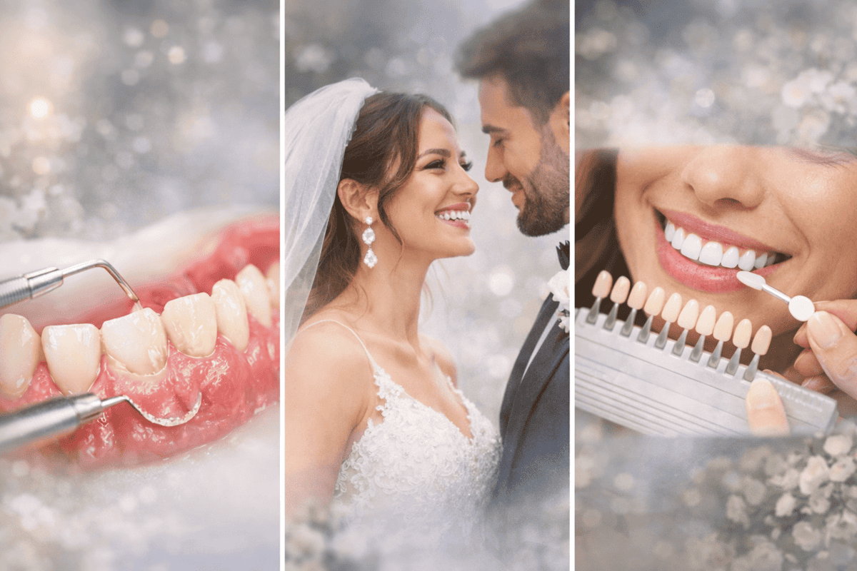 Your wedding photos last forever. Yellow teeth, stains, or uneven smiles don’t fix themselves in editing. This package is designed to give you a clean, bright, and balanced smile before your big day — safely and professionally.